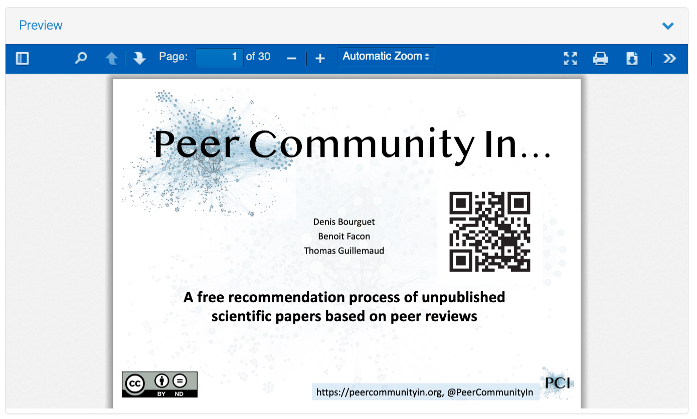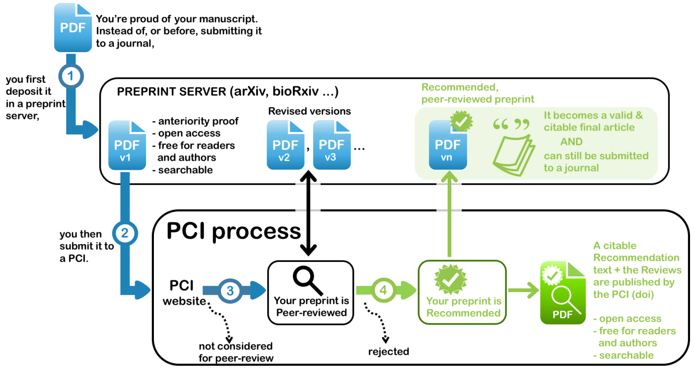 Each PCI is a group of several hundred recommenders playing the role of editors who recommend such preprints based on peer-reviews to make them complete, reliable and citable articles, without the need for publication in ‘traditional’ journals (although the authors can submit their recommended preprints afterwards).